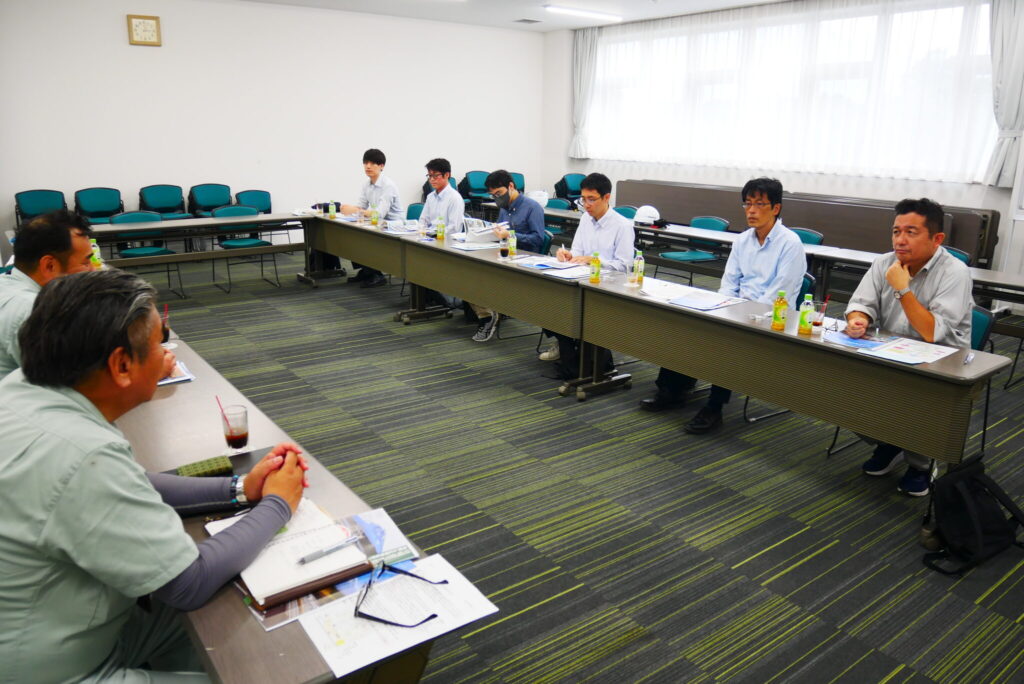 視察後の意見交換では、「(建設現場の暑さが課題として取り上げられている中で)猛暑の問題も実感できた。仕事に生かしていきたい」(渡邊課長)、「(建設業には)いろいろな職種、技能があるが、どういう仕事をしているのか見る機会がなかった。一部であるが体験できて良かった」(小川CCUS推進官)、「中途採用者の教育訓練など訓練センターの果たしている役割が分かった。課題を含めてしっかり勉強していく」(酒井課長補佐)―といった感想が出されました。