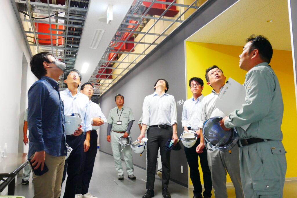 視察には平嶋審議官の他、不動産・建設経済局建設業課の渡邊哲至課長、酒井大斗入札制度企画指導室課長補佐、大臣官房参事官(建設人材・資材)付の小川洋輔建設キャリアアップシステム推進官などが参加しました。