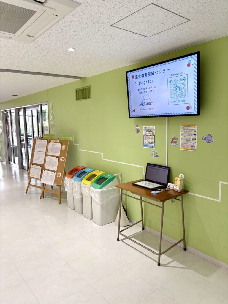 訓練センターでは、食堂前のサロンのデジタルサイネージ下にカードリーダーを設置しています。カードをお持ちの方は、タッチをお忘れなく。