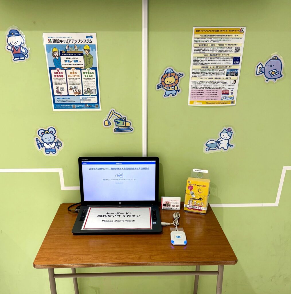 富士教育訓練センターでは、昨年度からCCUSのカードタッチ経験の場としてカードリーダーを設置して試行していました(インセンティブとしてCCUS応援自販機を設置して飲料を1日1本無料提供)。このため、9月にあらためてカードリーダーを設置し、10月1日からスタートすることができました。